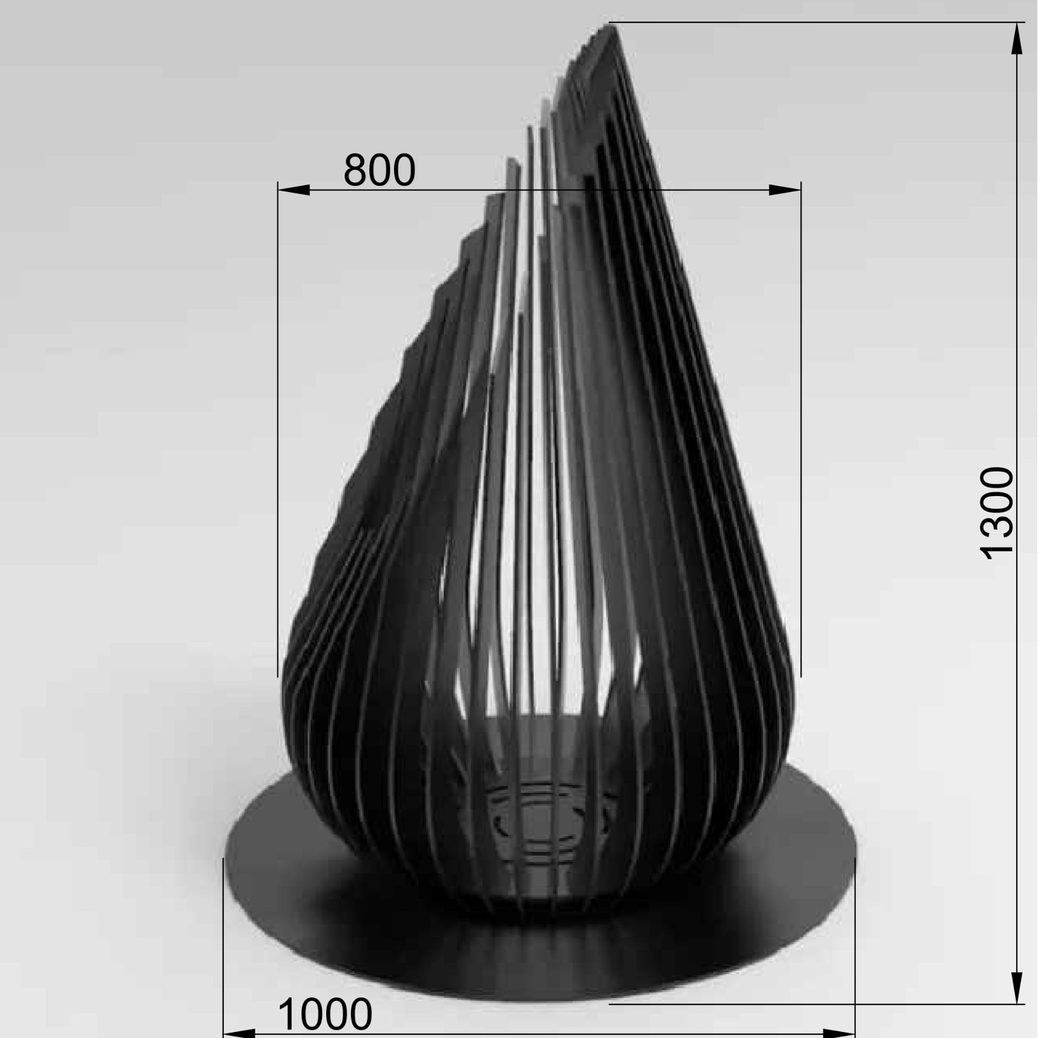 Šiuolaikiško dizaino plieninė laužavietė, išsiskirianti unikalia „lašinio“ formos konstrukcija, kuri ne tik traukia akį, bet ir sukuria ypatingą ugnies žaismą. Atvira vertikali struktūra leidžia liepsnai laisvai kilti, o šešėliai sukuria jaukią atmosferą kieme, terasoje ar sodyboje.
